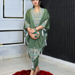 modern ethnic ensemble. The striking Green and Royal Blue color combination